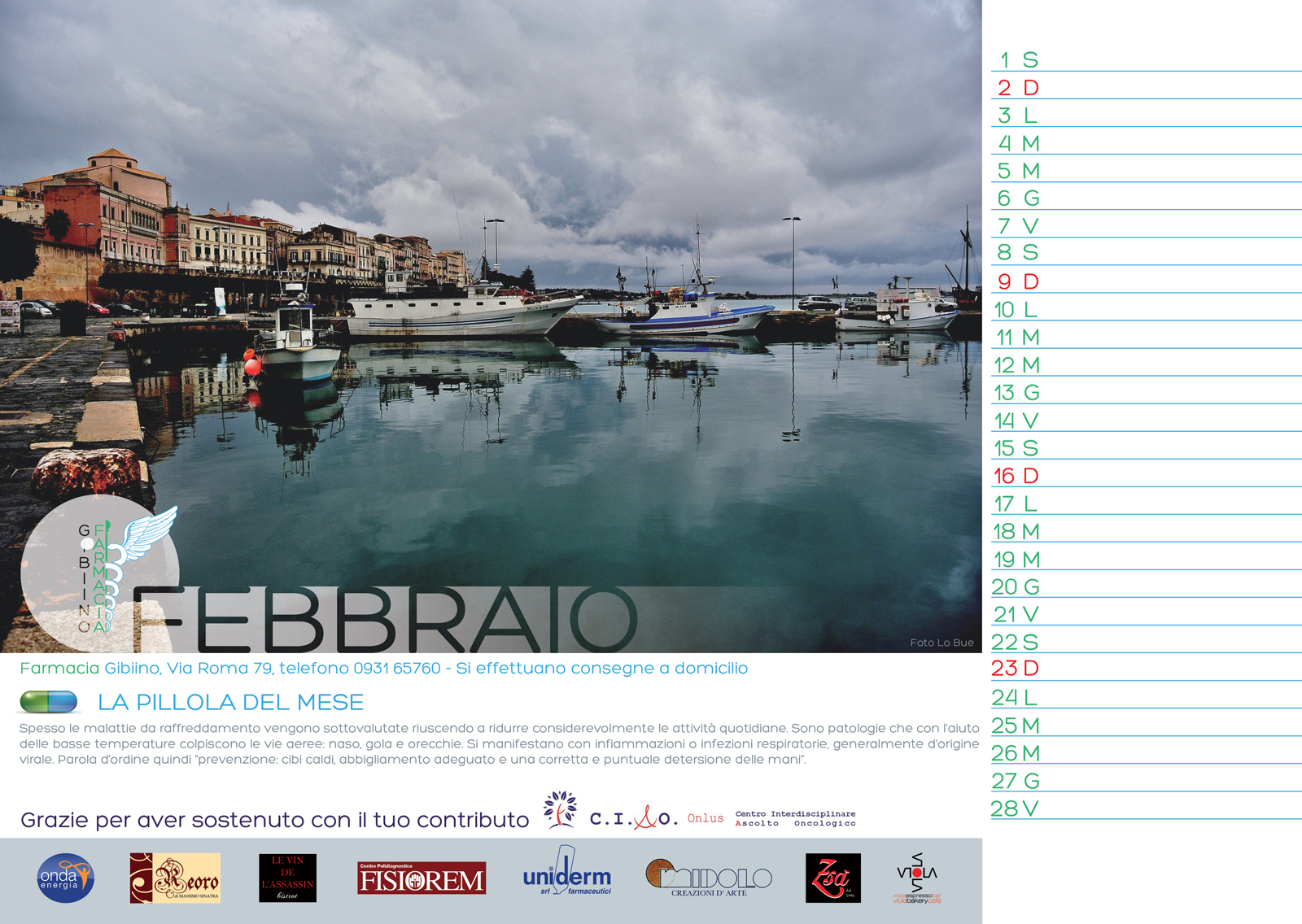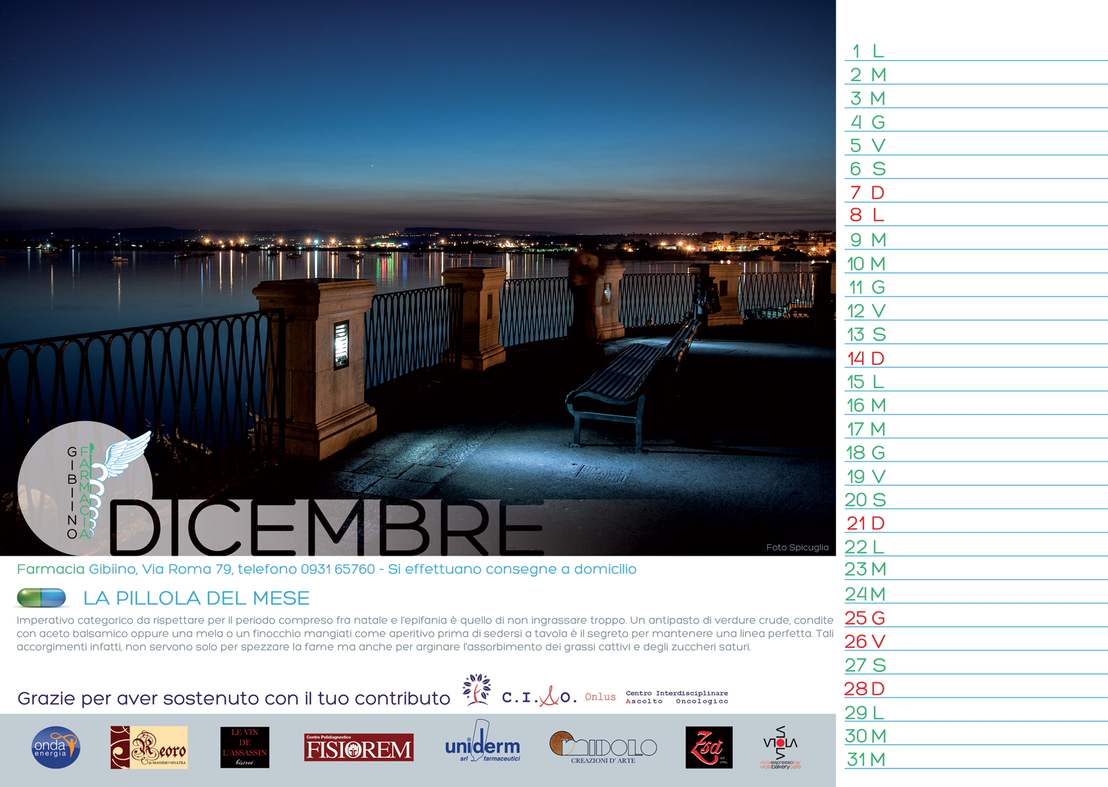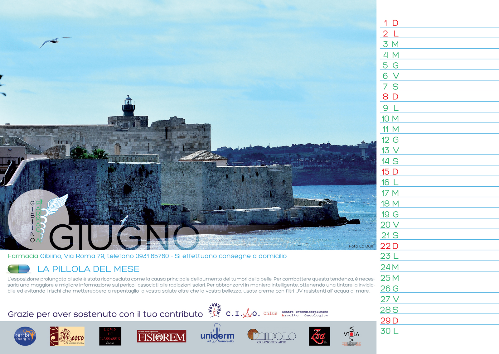 La Farmacia Gibiino si è fatta promotrice dell’ iniziativa Ortigia in Pillole, un concorso fotografico aperto a fotografi dilettanti e non, che premia i 13 migliori scatti con la partecipazione alla realizzazione di un calendario la cui vendita verrà totalmente devoluta alla onlus C.I.A.O.