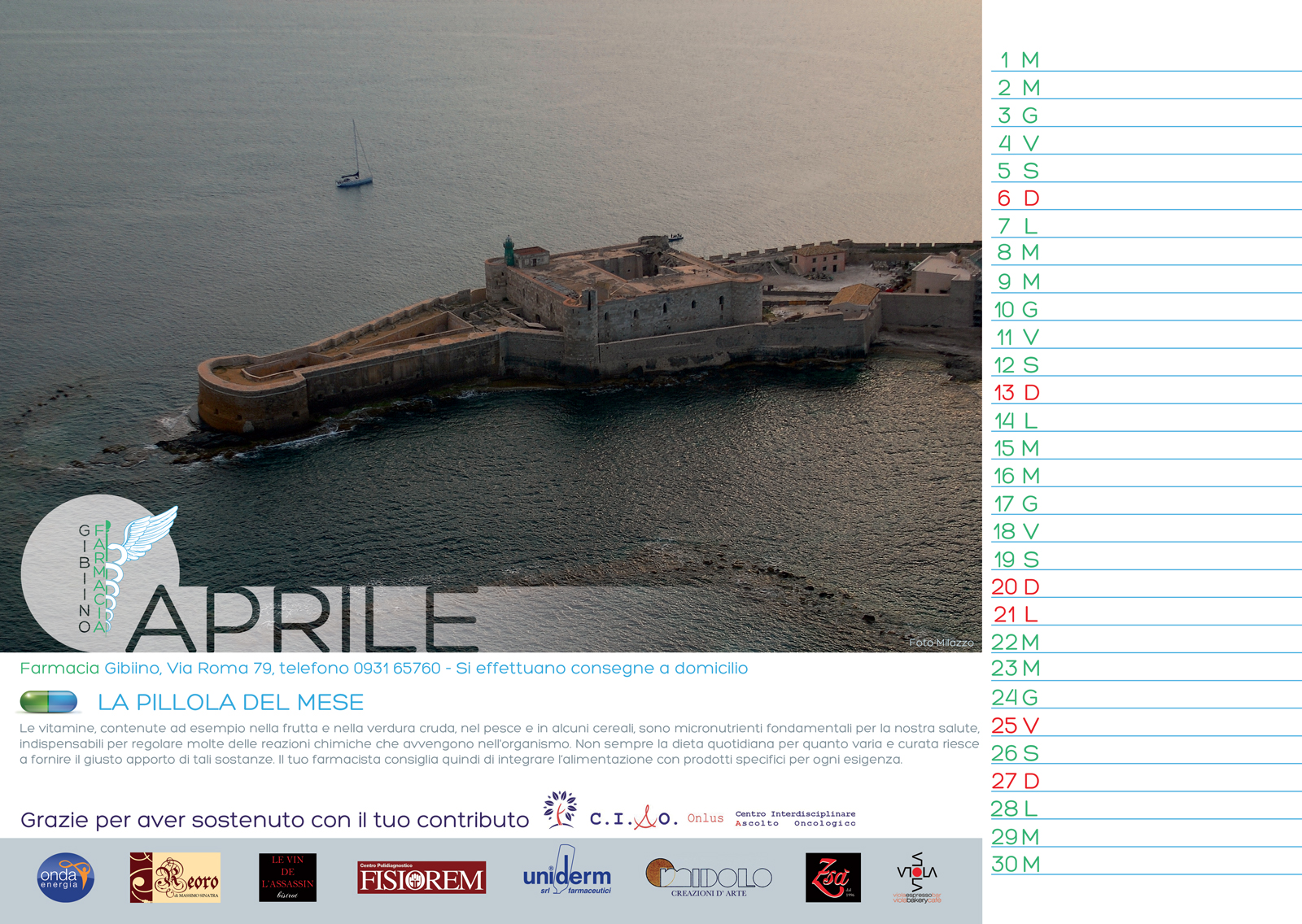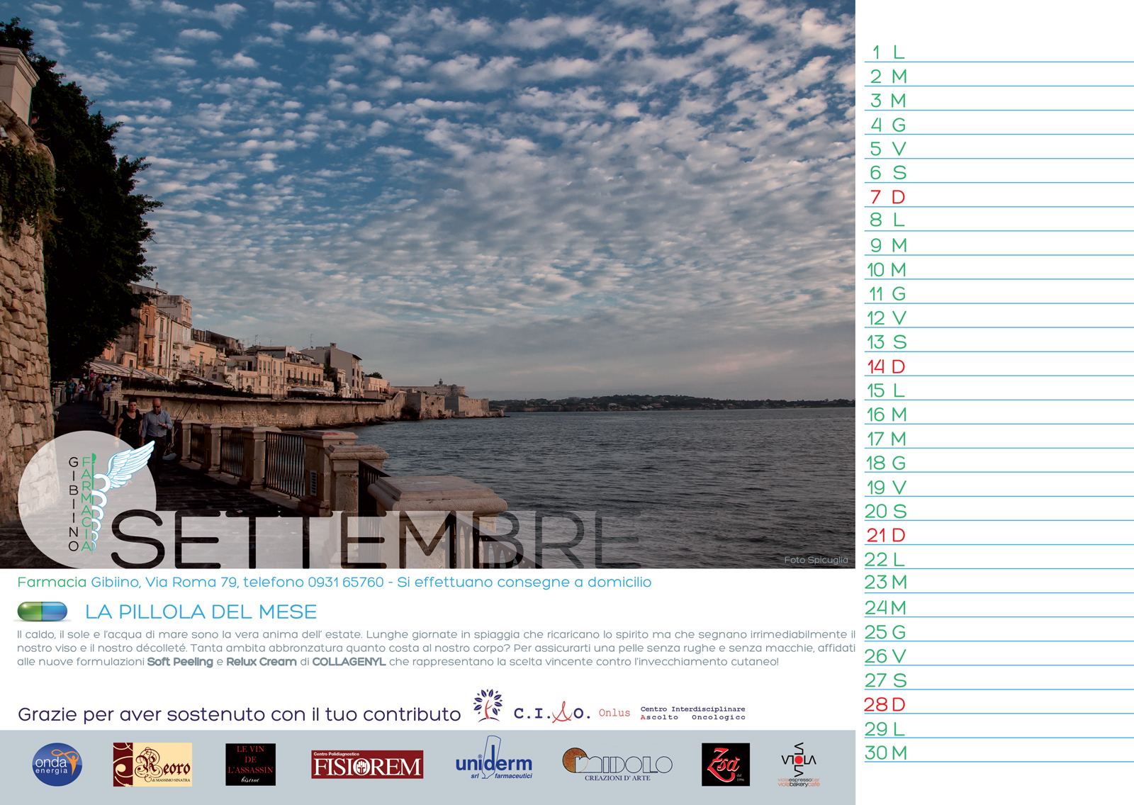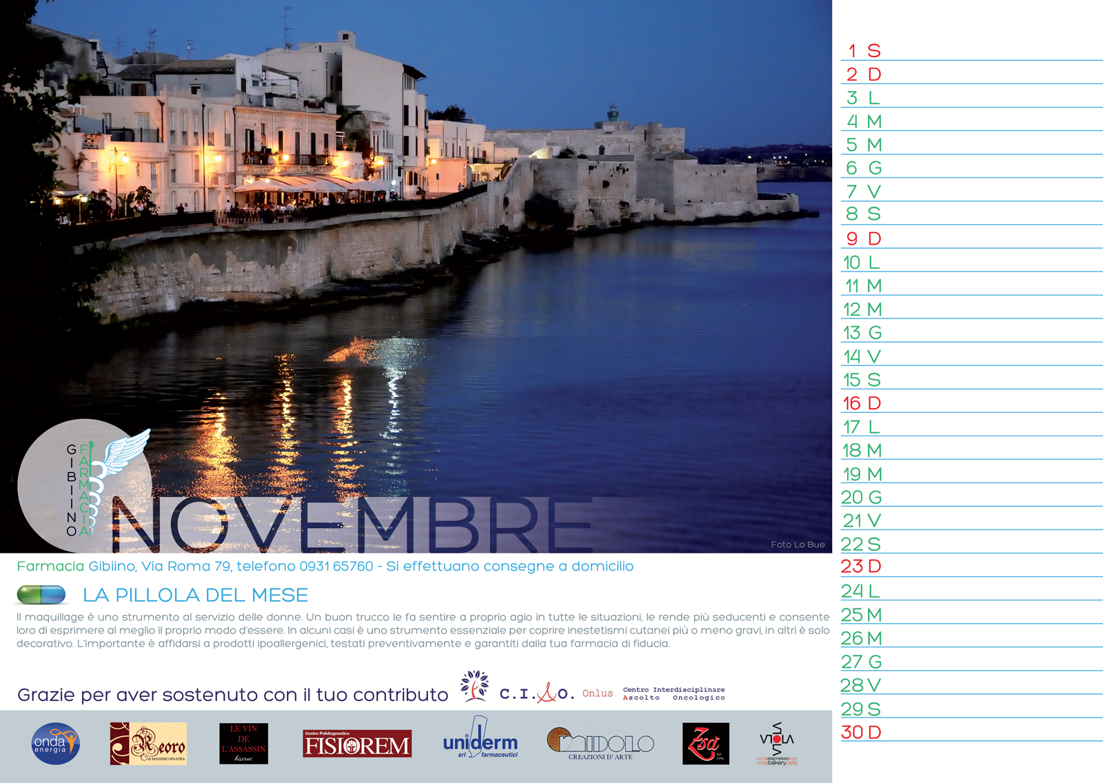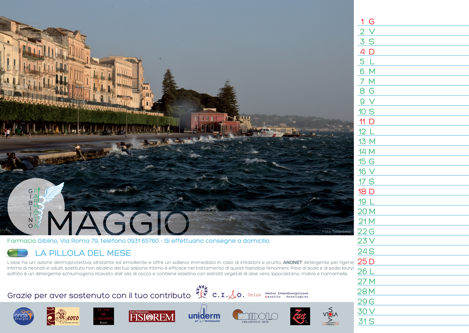La Farmacia Gibiino si è fatta promotrice dell’ iniziativa Ortigia in Pillole, un concorso fotografico aperto a fotografi dilettanti e non, che premia i 13 migliori scatti con la partecipazione alla realizzazione di un calendario la cui vendita verrà totalmente devoluta alla onlus C.I.A.O.